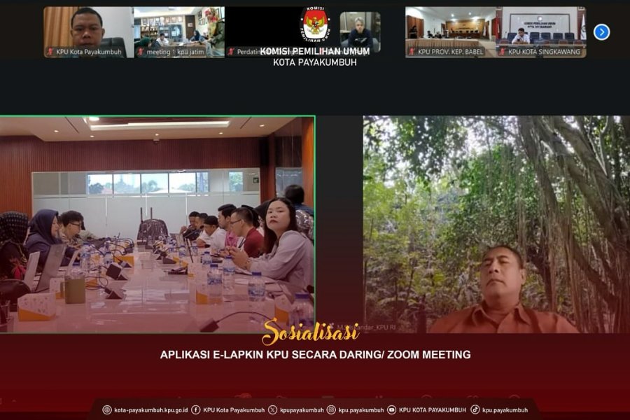 Payakumbuh - Plh. Sekretaris KPU Kota Payakumbuh Riki Rahmad, Kasubbag Perencanaan, Data dan Informasi M. Luthfi Munzir, dan staf Subbagian Perencanaan, Data dan Informasi S. R. Yuningsih dan Amarsya Dandittya mengikuti Sosialisasi Aplikasi E-Lapkin KPU, Senin (15 September 2025) secara daring/ Zoom Meeting.