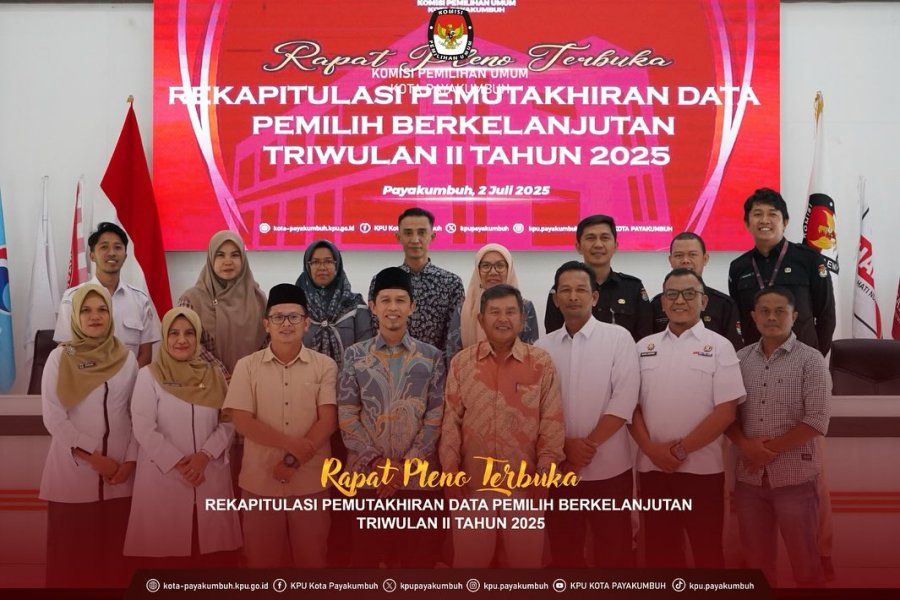 KPU Kota Payakumbuh menyelenggarakan Rapat Pleno Terbuka Pemutakhiran Data Pemilih Berkelanjutan (PDPB) Triwulan II Tahun 2025. Kegiatan ini merupakan bagian penting dalam menjaga akurasi, validitas, dan integritas data pemilih, dengan memperhatikan berbagai dinamika kependudukan, antara lain pemilih yang meninggal dunia, pindah domisili, perubahan status TNI/Polri, serta pemilih baru yang memenuhi syarat.