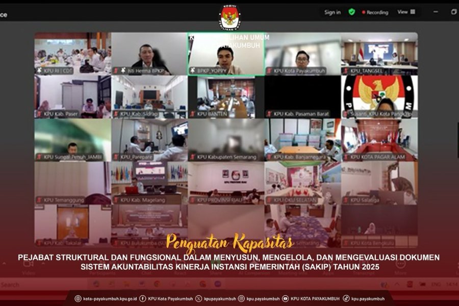 Pada Senin, 14 Juli 2025, KPU Kota Payakumbuh mengikuti Rapat Penguatan Kapasitas Pejabat Struktural dan Fungsional dalam Menyusun, Mengelola, dan Mengevaluasi Dokumen Sistem Akuntabilitas Kinerja Instansi Pemerintah (SAKIP) Tahun 2025. Kegiatan ini dihadiri oleh Sekretaris KPU Kota Payakumbuh, Beni Mustika, serta Kasubbag Perencanaan, Data dan Informasi, M. Luthfi Munzir.