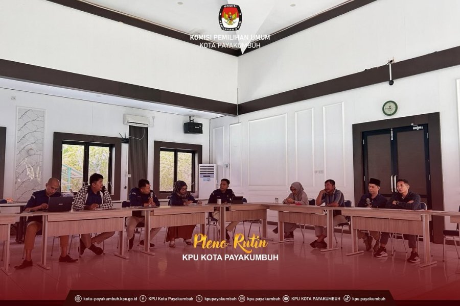KPU Kota Payakumbuh melaksanakan rapat pleno rutin pada Selasa, 15 Juli 2025. Rapat ini membahas sejumlah progres penting terkait pelaksanaan tahapan Pemilu dan Pilkada, kegiatan kajian teknis, serta realisasi anggaran.