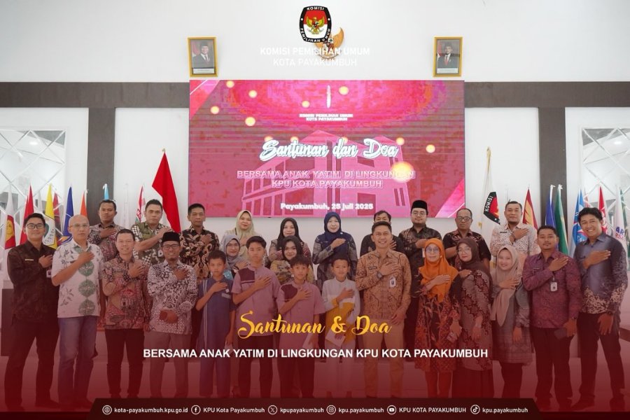 Pada Jumat, 25 Juli 2025 pukul 14.30 WIB, KPU Kota Payakumbuh melaksanakan kegiatan santunan dan doa bersama anak yatim. Acara ini dihadiri oleh Sekretaris KPU Kota Payakumbuh, Beni Mustika, pejabat struktural, pejabat fungsional, serta seluruh staf sekretariat.