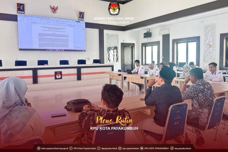 Pada Senin, 25 Agustus 2025, KPU Kota Payakumbuh kembali menggelar rapat pleno rutin yang dipimpin langsung oleh Ketua KPU. Rapat ini dihadiri oleh komisioner, sekretaris, para kepala subbagian, pejabat fungsional, hingga staf sekretariat.