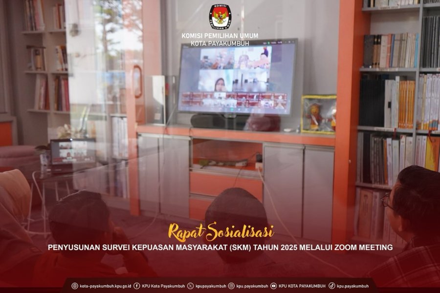 Pada Kamis, 28 Agustus 2025, Subbagian Perencanaan, Data dan Informasi Sekretariat KPU Kota Payakumbuh mengikuti Rapat Sosialisasi Penyusunan Survei Kepuasan Masyarakat (SKM) Tahun 2025. Kegiatan ini berlangsung melalui Zoom Meeting bersama KPU RI, KPU Provinsi, serta KPU Kabupaten/Kota.