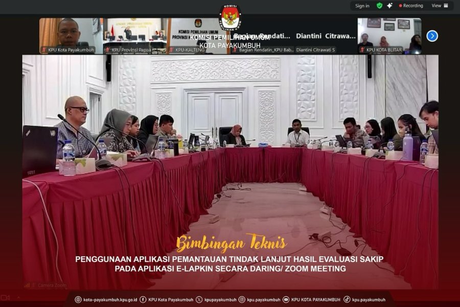 Hallo #TemanPemilih, Plh. Sekretaris KPU Kota Payakumbuh Riki Rahmad, Kasubbag Perencanaan, Data dan Informasi M. Luthfi Munzir, dan staf pelaksana pada Subbagian Perencanaan, Data dan Informasi S. R. Yuningsih dan Amarsya Dandittya mengikuti Zoom Meeting Bimbingan Teknis Penggunaan Aplikasi Pemantauan Tindak Lanjut Hasil Evaluasi SAKIP pada Aplikasi E-LAPKIN, Selasa (16 September 2025).