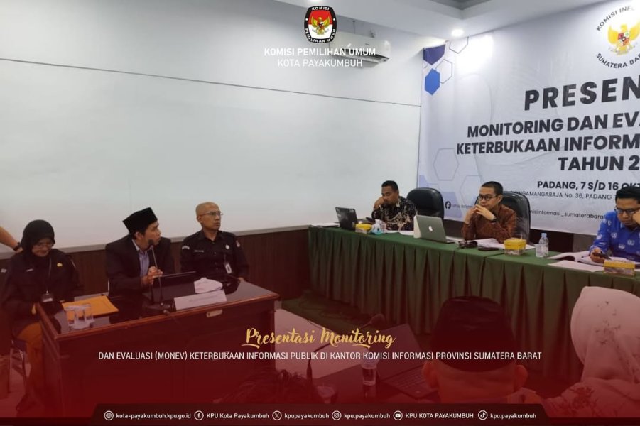 KPU Kota Payakumbuh menghadiri kegiatan presentasi monitoring dan evaluasi (monev) keterbukaan informasi publik tahun 2025 yang diselenggarakan oleh Komisi Informasi Provinsi Sumatera Barat pada Rabu, 15 Oktober 2025, bertempat di Kantor Komisi Informasi Provinsi Sumatera Barat.