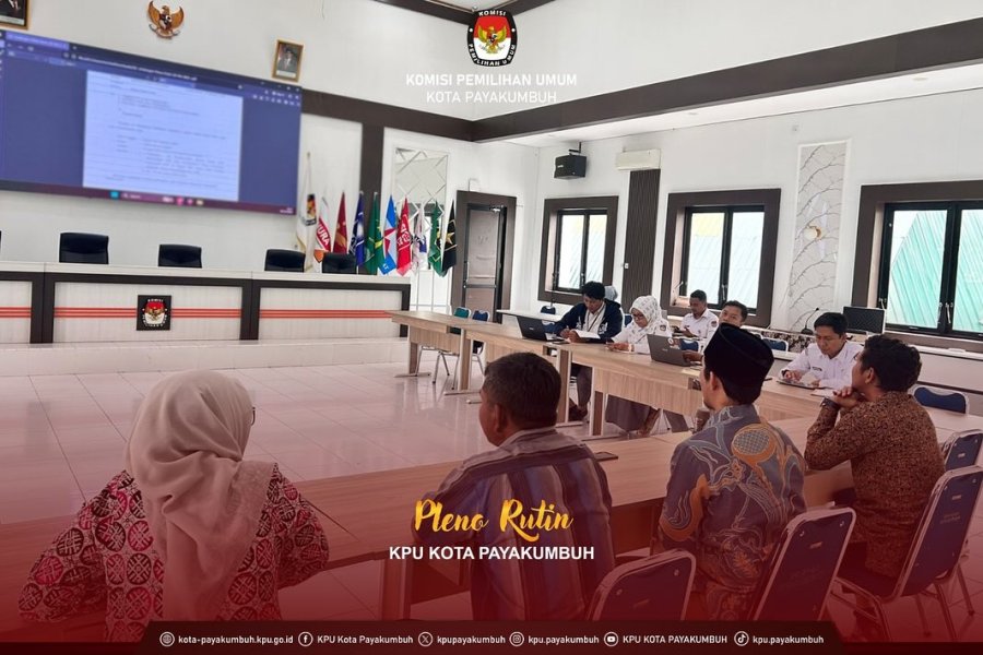 KPU Kota Payakumbuh melaksanakan rapat pleno rutin pada Senin, 20 Oktober 2025, yang diikuti oleh Ketua, Anggota, Sekretaris, pejabat fungsional dan struktural, serta seluruh staf sekretariat.