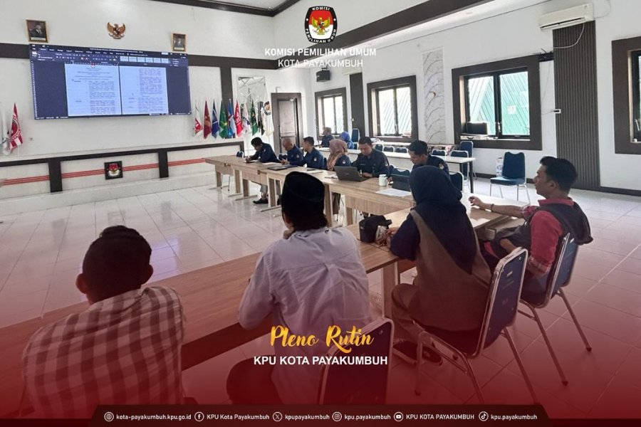 KPU Kota Payakumbuh melaksanakan rapat pleno rutin pada Selasa, 23 Desember 2025, bertempat di Aula HKM KPU Kota Payakumbuh. Rapat pleno ini dihadiri oleh Ketua, Anggota, Sekretaris, Pejabat Struktural, serta Pejabat Fungsional KPU Kota Payakumbuh.