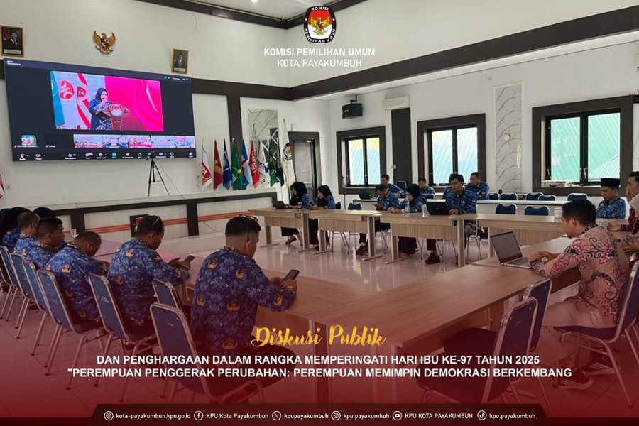 KPU Kota Payakumbuh mengikuti Dialog Publik yang diselenggarakan oleh Komisi Pemilihan Umum Republik Indonesia (KPU RI) pada Senin, 22 Desember 2025, dalam rangka peringatan Hari Ibu ke-97 Tahun 2025. Kegiatan ini mengusung tema “Perempuan Penggerak Perubahan: Perempuan Memimpin, Demokrasi Berkembang” dan dilaksanakan secara luring di KPU RI serta diikuti secara daring oleh KPU Provinsi dan KPU Kabupaten/Kota se-Indonesia.