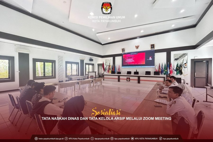 KPU Kota Payakumbuh mengikuti Sosialisasi Pengelolaan Tata Naskah Dinas yang diselenggarakan oleh KPU Provinsi Sumatera Barat melalui Zoom Meeting, pada Senin, 12 Januari 2026. Kegiatan ini diikuti dari Aula HKM KPU Kota Payakumbuh.