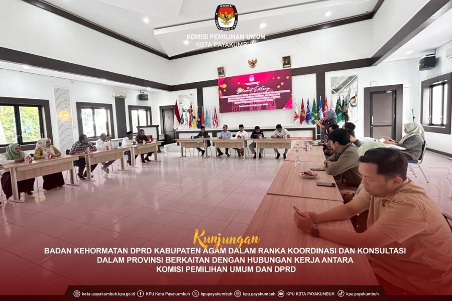 Komisi Pemilihan Umum (KPU) Kota Payakumbuh menerima kunjungan kerja Badan Kehormatan DPRD Kabupaten Agam pada Kamis, 22 Januari 2026, bertempat di Aula HKM KPU Kota Payakumbuh. Kunjungan kerja tersebut dilaksanakan dalam rangka koordinasi dan konsultasi kelembagaan guna memperkuat sinergi antarinstansi.