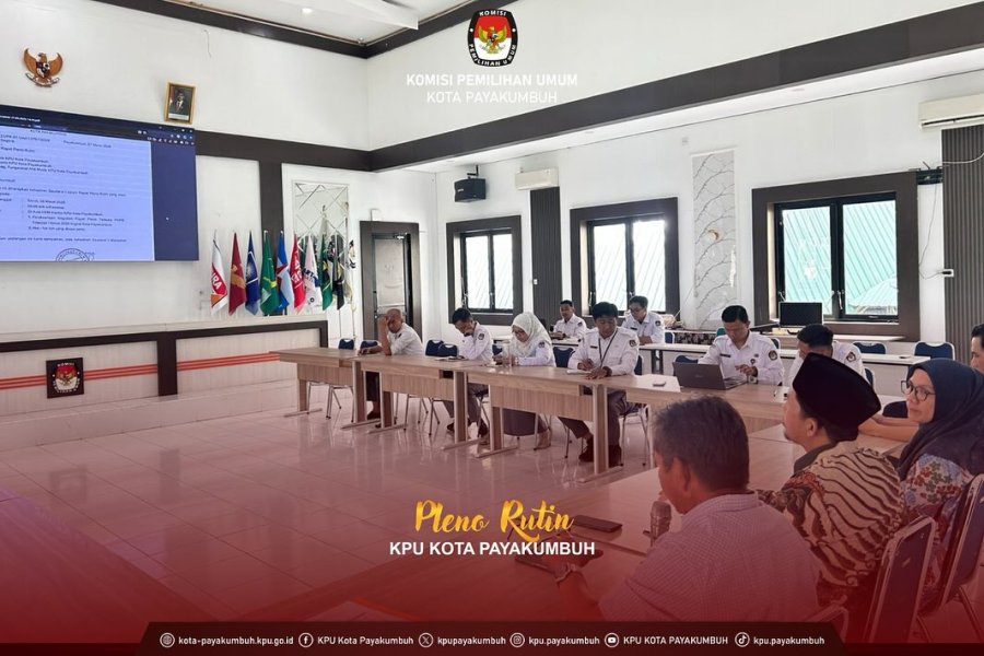 Pada Senin, 30 Maret 2026, KPU Kota Payakumbuh melaksanakan Rapat Pleno Rutin yang bertempat di Aula HKM KPU Kota Payakumbuh. Kegiatan ini dihadiri oleh Ketua, Anggota, Sekretaris, serta pejabat struktural dan fungsional sebagai bagian dari penguatan koordinasi dan perencanaan kinerja kelembagaan.