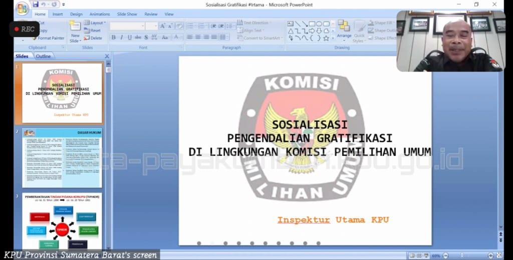 Mengingat bahaya gratifikasi tersebut, KPU Provinsi Sumatera Barat menyelenggarakan kegiatan Sosialisasi Pengendalian Gratifikasi, Rabu (11 Mei 2022). Kegiatan tersebut diikuti oleh komisioner dan sekretariat KPU Kabupaten/Kota se Sumatera Barat secara daring. Ketua dan Anggota KPU Kota Payakumbuh beserta sekretaris dan jajaran sekretariat mengikuti sosialisasi tersebut secara daring dari kantor dan dari rumah. Narasumber sosialisasi ini adalah Inspektur Utama KPU RI Nanang Supriyatna dan Inspektur Wilayah III Nur Wakit Aliyusron.