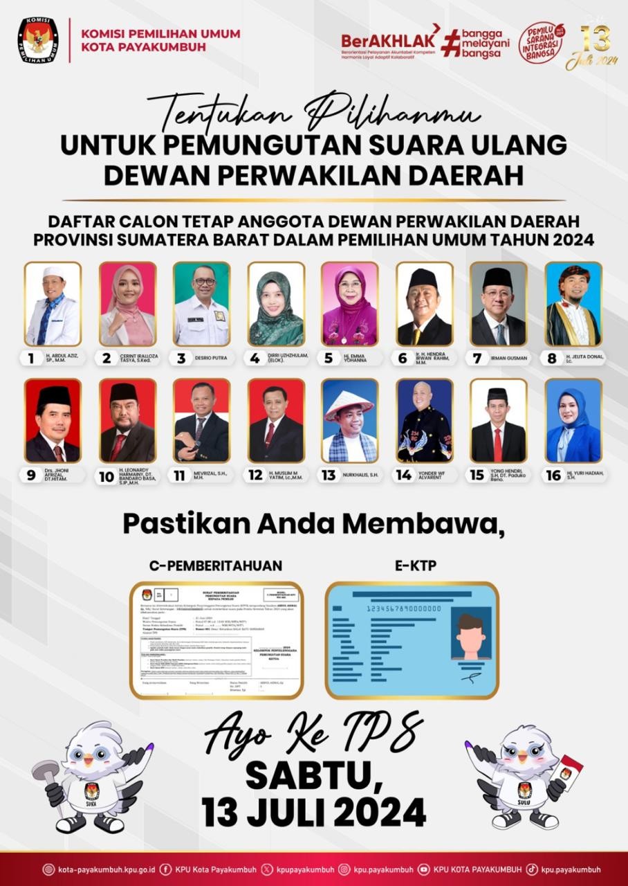 #TemanPemilih, berikut Daftar Calon Tetap Anggota Dewan Perwakilan Daerah Provinsi Sumatera Barat Dalam Pemilihan Umum Tahun 2024 untuk Pemungutan Suara Ulang Pasca Putusan Mahkamah Konstitusi Nomor: 03-03-PHPU.DPD-XXII/2024.