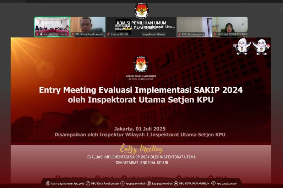 Hallo #TemanPemilih, Sekretaris KPU Kota Payakumbuh Beni Mustika dan Kasubbag Perencanaan, Data dan Informasi M. Luthfi Munzir menghadiri Undangan Sekretaris Jenderal KPU RI perihal Entry Meeting Evaluasi Implementasi Sistem Akuntabilitas Kinerja Instansi Pemerintah (SAKIP) Tahun 2024, Selasa (1 Juli 2025) melalui Zoom Meeting.