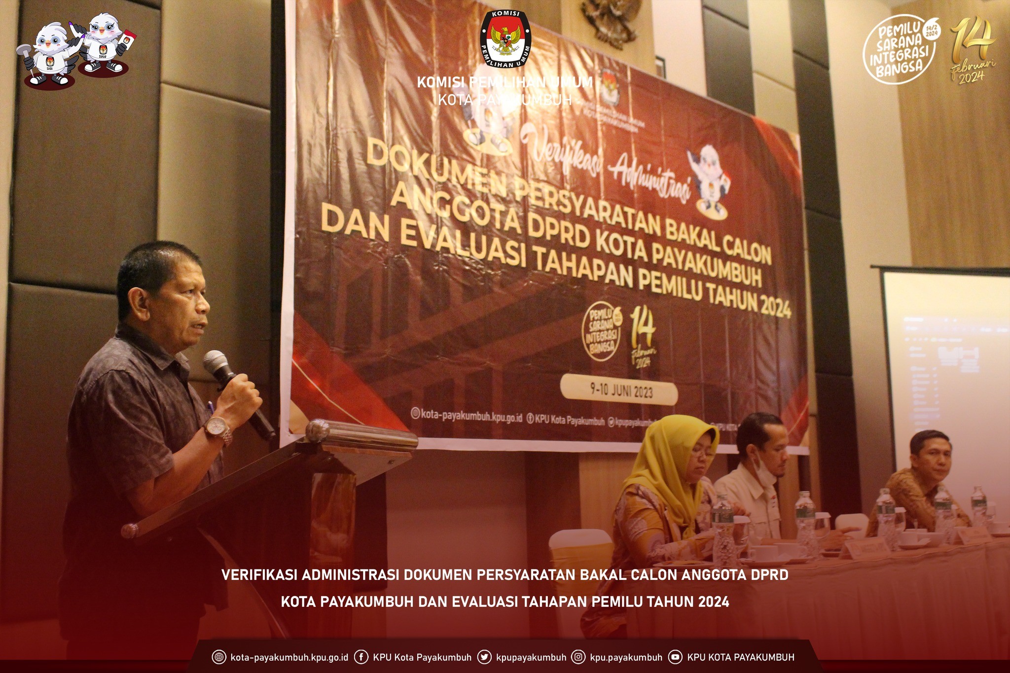 Bukittinggi --- KPU Kota Payakumbuh melaksanakan Verifikasi Administrasi Dokumen Persyaratan Bakal Calon Anggota DPRD Kota Payakumbuh dan Evaluasi Tahapan Pemilu Tahun 2024, Jumat - Sabtu / 9 - 10 Juni 2023.