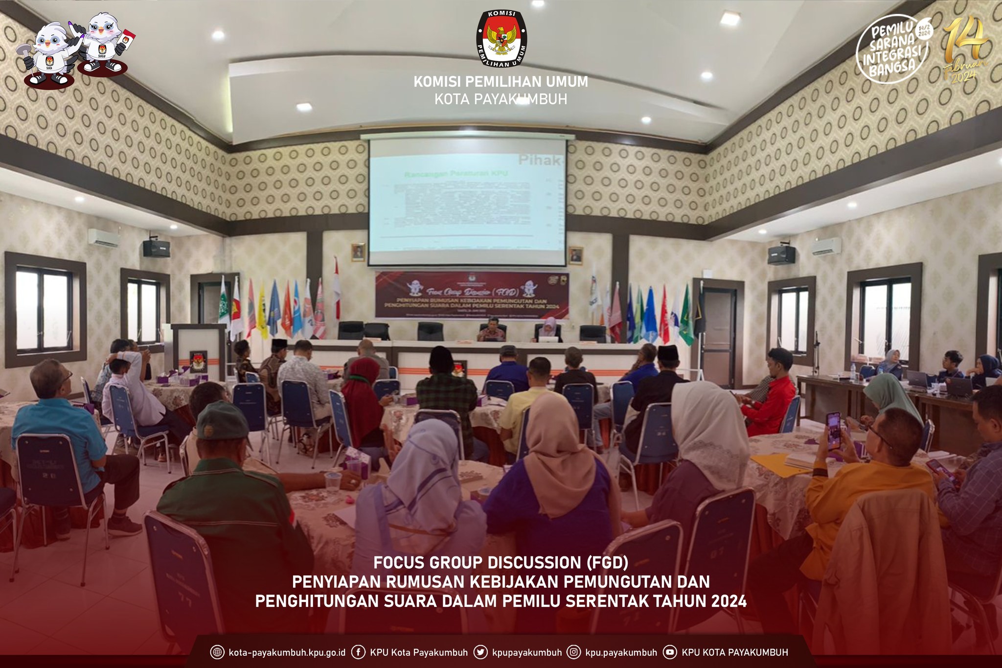 FGD di buka langsung oleh Plh. Ketua KPU Kota Payakumbuh Khairudin Fambo . Setelah pembukaan, acara di pimpin oleh Ketua Divisi Teknis Penyelenggaraan Pemilu Suci Wildanis. Sedangkan Narasumber FGD Penyiapan Rumusan Kebijakan Pemungutan dan Penghitungan Suara dalam Pemilu Serentak Tahun 2024 adalah Bapak Dr. Khairul Fahmi, SH, MH.