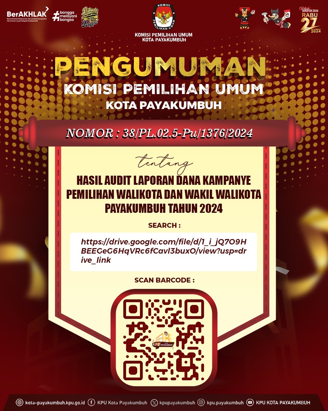 HASIL AUDIT LAPORAN DANA KAMPANYE PEMILIHAN WALIKOTA DAN WAKIL WALIKOTA PAYAKUMBUH TAHUN 2024