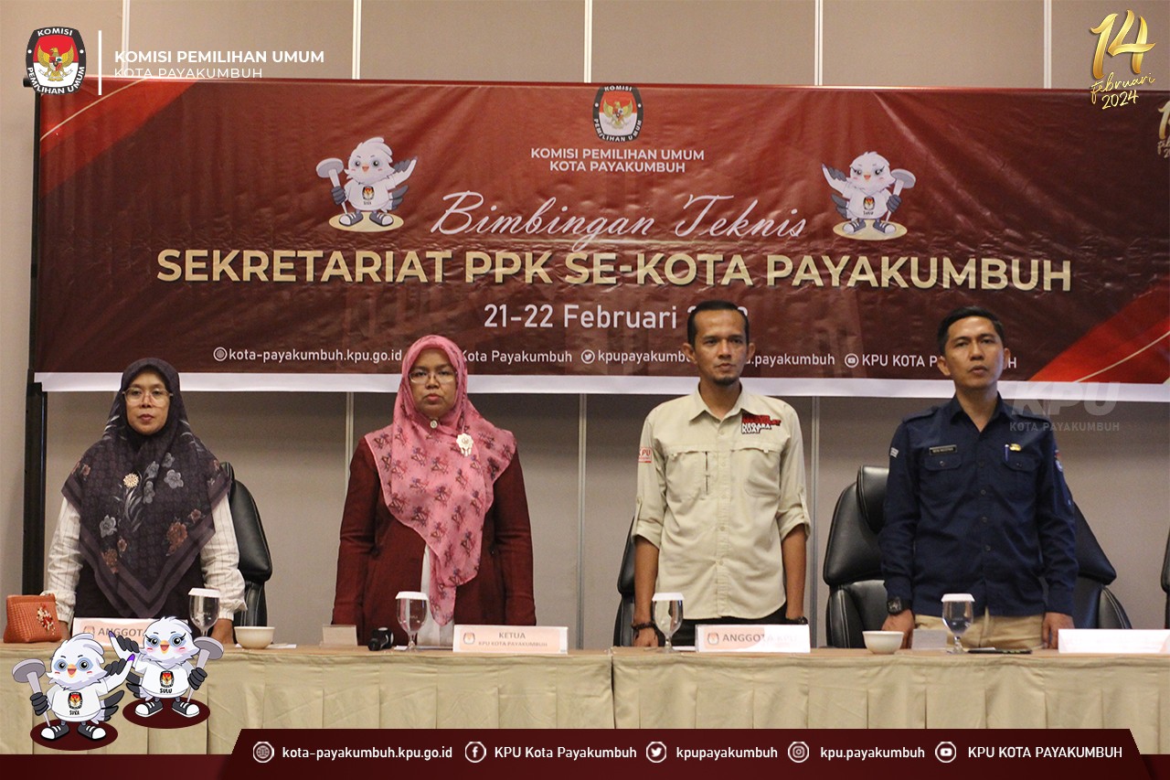 Bukittinggi --- Sekretariat Panitia Pemilihan Kecamatan (PPK) berperan penting sebagai supporting system dalam penyelenggaraan Pemilihan Umum Tahun 2024 di tingkat Kecamatan. Karenanya, sinergisitas antara PPK dan sekretariat PPK menjadi kunci suksesnya setiap tahapan Pemilu 2024. Hal tersebut mengemuka pada Bimbingan Teknis Sekretariat PPK se Kota Payakumbuh, Selasa (21 Februari 2023) sore, yang dibuka secara resmi oleh Ketua Divisi Hukum dan Pengawasan KPU Kota Payakumbuh Ade Jumiarti Marlia.