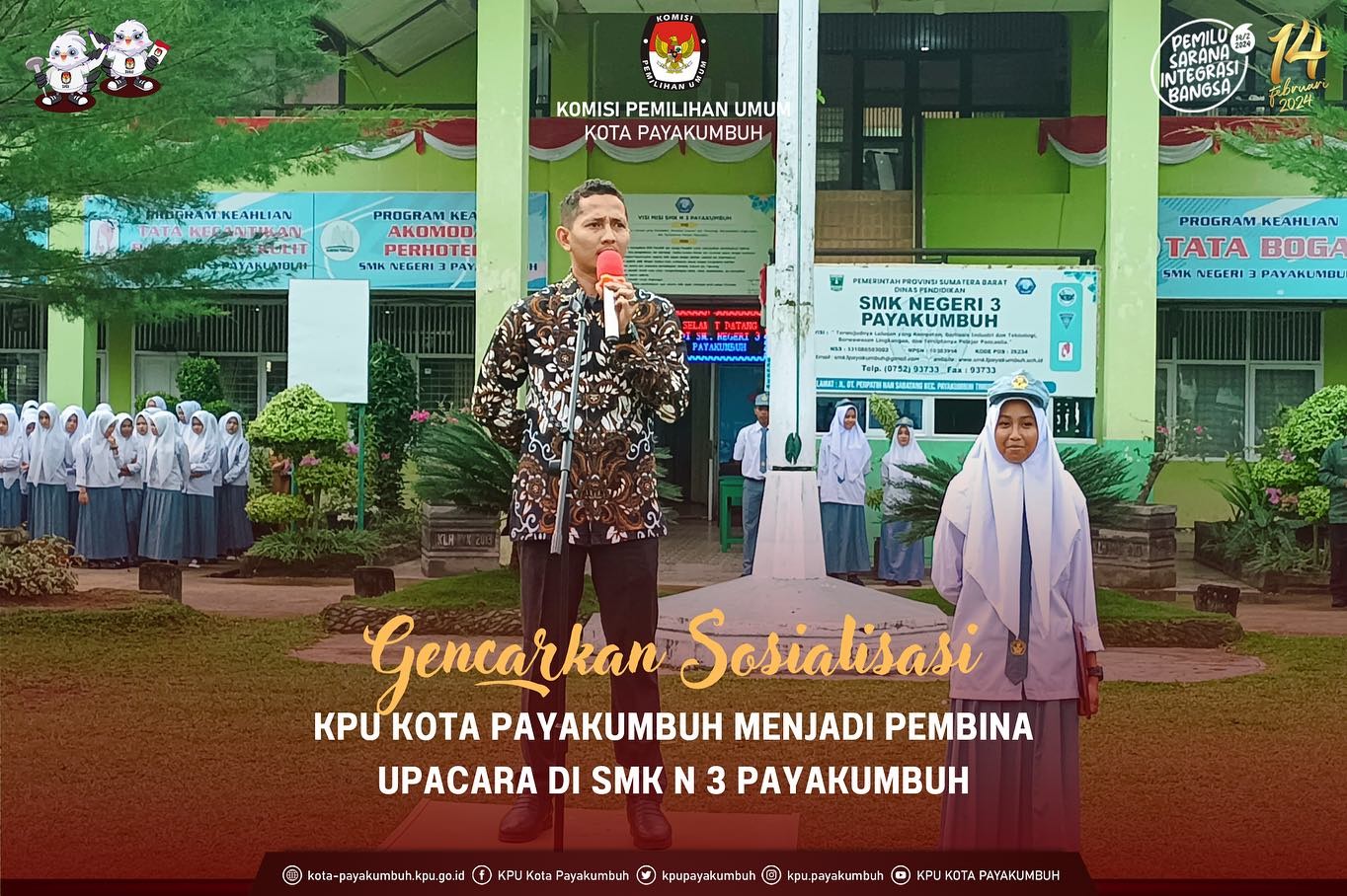 Payakumbuh --- Ketua Divisi Hukum dan Pengawasan KPU Kota Payakumbuh, Ihsanul Huda menjadi Pembina Upacara Bendera di SMK Negeri 3 Payakumbuh, Senin (4/9).