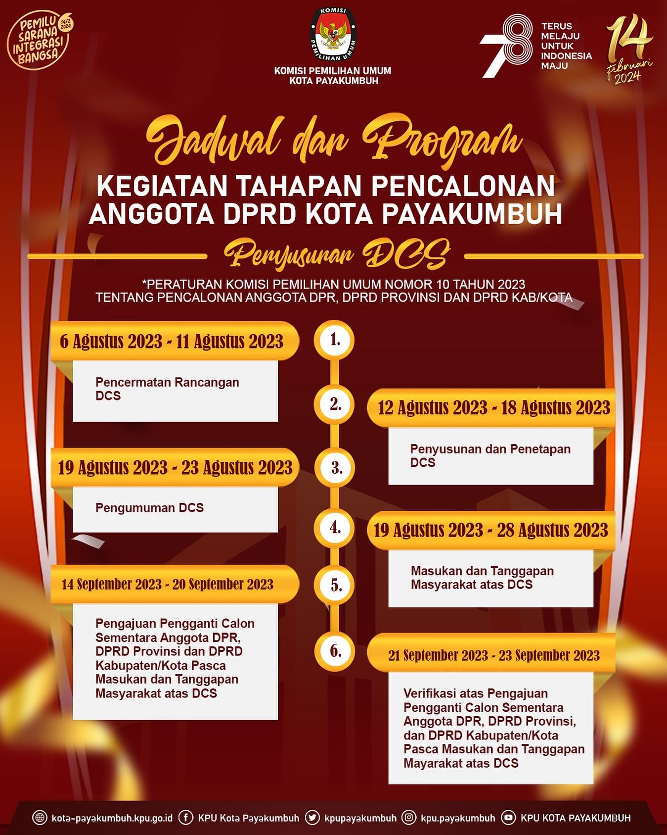 Hallo #TemanPemilih, kamu perlu tahu, inilah jadwal dan tahapan Pencalonan Anggota DPRD kota Payakumbuh untuk Pemilu Tahun 2024 dalam proses Penyusunan Daftar Calon Sementara (DCS)