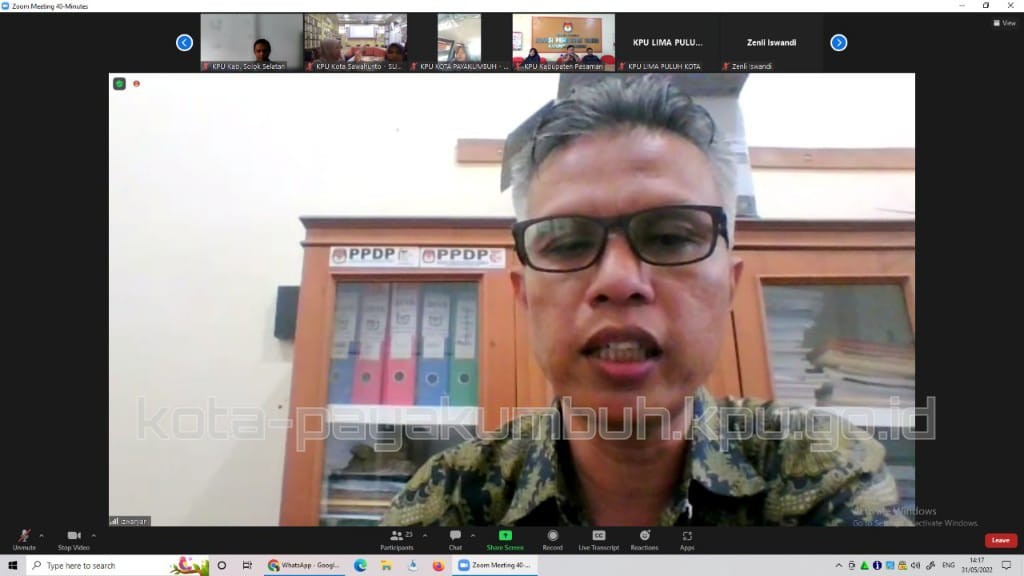 Divisi SosDikLihParmas dan SDM KPU Kota Payakumbuh Nina Trisna, Kasubag Teknis Penyelenggaraan, Partisipasi dan Hubungan Masyarakat M. Luthfi Munzir dan tim kehumasan KPU Kota Payakumbuh mengikuti rapat divisi ini.