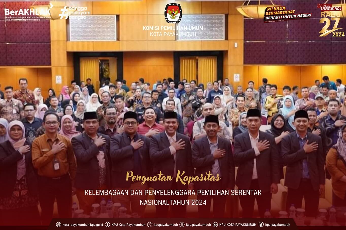 Padang --- Dalam rangka menghadapi dinamika penyelenggaraan Pemilu dan Pemilihan Serentak 2024, KPU Provinsi Sumatera Barat menyelenggarakan konsolidasi bersama KPU Kabupaten/Kota dalam rangka kegiatan Penguatan Kapasitas Kelembagaan dan Penyelenggara Pemilihan Serentak Nasional 2024 pada tanggal 14 s.d 15 Juni 2024 di Hotel Basko Premiere, Padang.