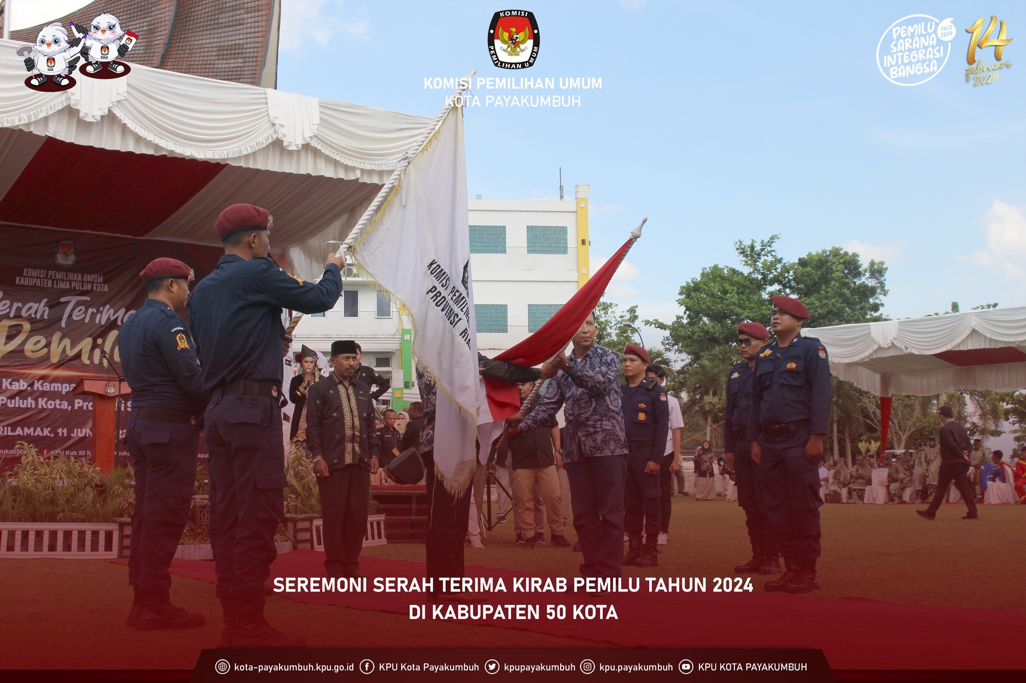 KPU Kota Payakumbuh Hadiri Seremoni Serah Terima Bendera Kirab Pemilu Tahun 2024 Antara KPU Kab. Kampar dengan KPU Kab. Lima Puluh Kota