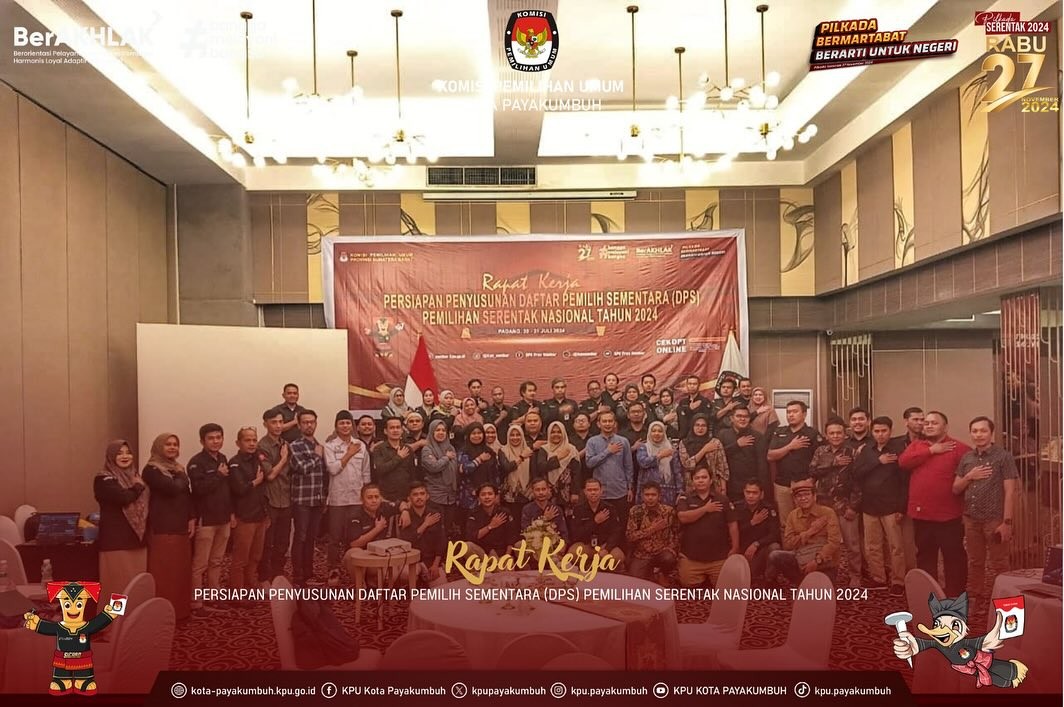 Payakumbuh --- Ketua Divisi Perencanaan, Data dan Informasi KPU Kota Payakumbuh Orizko Zulkifli, Kasubag Perencanaan, Data dan Informasi M. Luthfi Munzir, dan Operator Sistem Informasi Data Pemilih (Sidalih) Fauzan Azima mengikuti Rapat Kerja Persiapan Penyusunan Daftar Pemilih Sementara (DPS) Pemilihan Serentak Nasional Tahun 2024, Selasa-Rabu (30-31 Juli 2024) di Hotel Pangeran Beach Kota Padang. Raker yang diselenggarakan oleh KPU Provinsi Sumatera Barat menghadirkan KPU Kabupaten/Kota se Sumatera Barat.