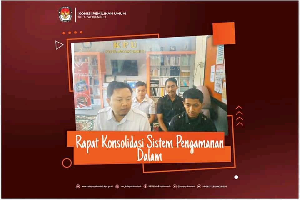 Payakumbuh --- Tugas pengamanan berperan penting dalam menjaga agar situasi dan kondisi di lingkungan kantor tetap aman dan terkendali. Hal itu yang diingatkan KPU RI pada rapat konsolidasi Sistem Pengamanan Dalam melalui zoom meeting, Senin (18 April 2022) pagi yang digelar oleh KPU Provinsi Sumatera Barat. Rapat konsolidasi tersebut diikuti oleh Sekretaris KPU Kabupaten/Kota se Sumatera Barat, Kepala Subbagian Keuangan, Umum, dan Logistik KPU Kabupaten/Kota se Sumatera Barat, serta staf pengamanan KPU Kabupaten/Kota se Sumatera Barat.