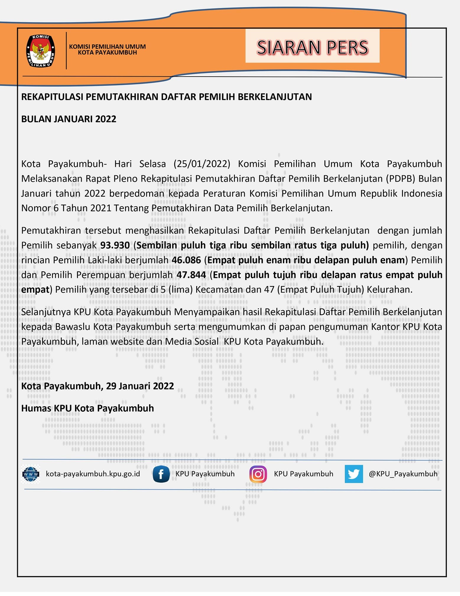 Pemutakhiran Data Pemilih Berkelanjutan Bulan Januari tahun 2022.