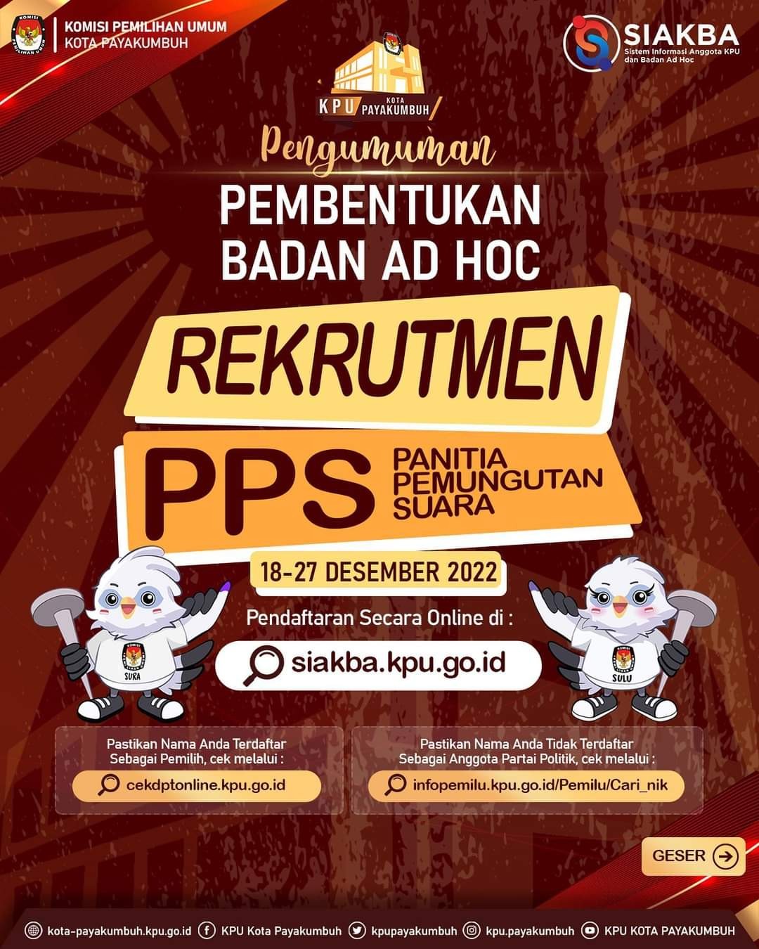 PENGUMUMAN REKRUITMEN CALON PANITIA PEMUNGUTAN SUARA (PPS) SE - KOTA PAYAKUMBUH