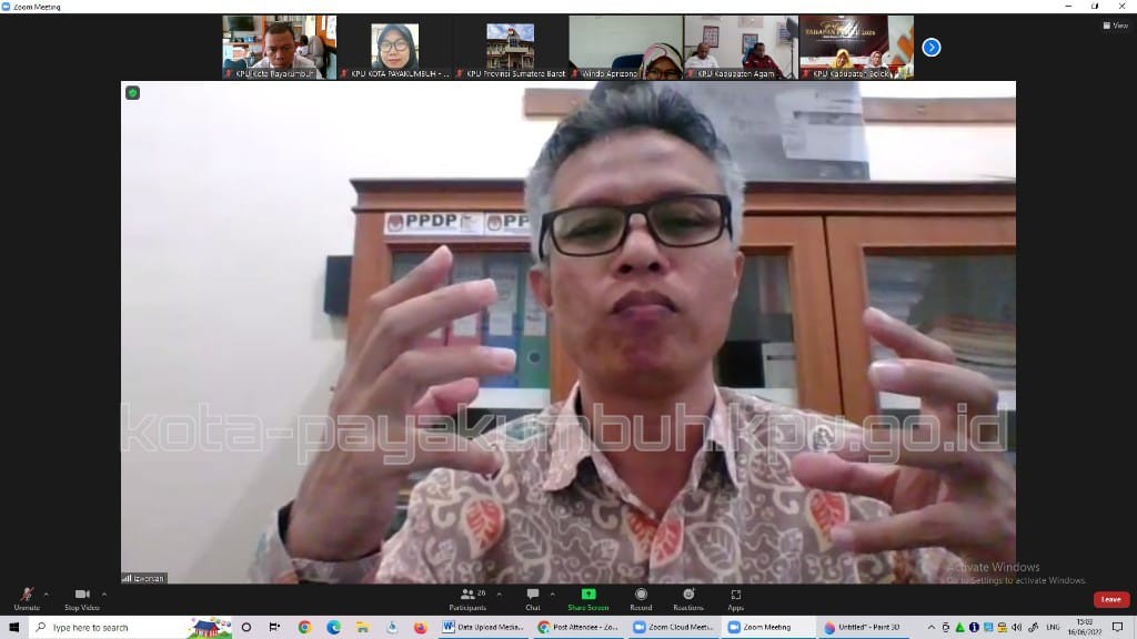 Rapat divisi dihadiri oleh Ketua Divisi SoDikLihParMasdanSDM KPU Kota Payakumbuh Nina Trisna dan Kasubag Teknis Penyelenggaraan Pemilu, Partisipasi dan Hubungan Masyarakat M. Luthfi Munzir, melalui ruang zoom meeting.