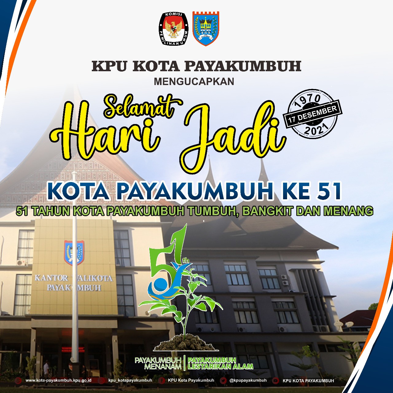 #TemanPemilih, Keluarga Besar KPU Kota Payakumbuh mengucapkan, Selamat Hari Jadi Kota Payakumbuh yang ke- 51 tahun, Semoga kota Payakumbuh selalu menjadi kota yang penuh inovasi dan prestasi untuk Payakumbuh menang!