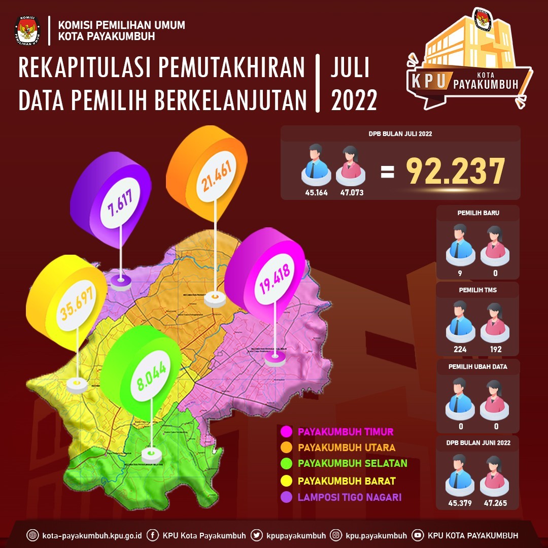 Payakumbuh --- Hari Kamis (28/07/2022) Komisi Pemilihan Umum Kota Payakumbuh Melaksanakan Rapat Pleno Rekapitulasi Pemutakhiran Daftar Pemilih Berkelanjutan (PDPB) Bulan Juli tahun 2022 berpedoman kepada Peraturan Komisi Pemilihan Umum Republik Indonesia Nomor 6 Tahun 2021 Tentang Pemutakhiran Data Pemilih Berkelanjutan.