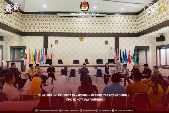 Ketua dan Anggota KPU Kota Payakumbuh periode 2023-2028 bersilaturrahmi dengan Panitia Pemilihan Kecamatan (PPK) se Kota Payakumbuh, Senin (10 Juli 2023) sore di Aula Lantai 2 Kantor KPU Kota Payakumbuh.