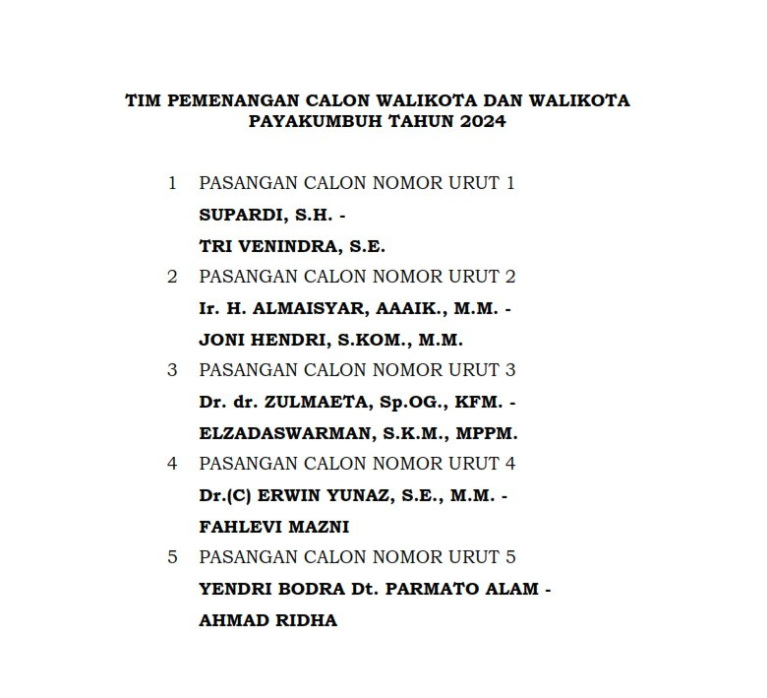 TIM PEMENANGAN PASANGAN CALON WALIKOTA DAN WAKIL WALIKOTA PAYAKUMBUH PADA PEMILIHAN SERENTAK NASIONAL TAHUN 2024