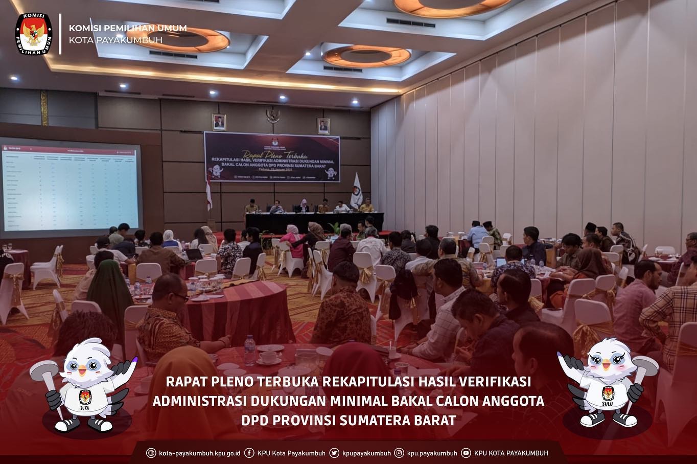Vermin Bakal Calon DPD Selesai, KPU Kota Payakumbuh Ikuti Rapat Pleno Terbuka Rekapitulasi Tingkat Provinsi Sumatera Barat