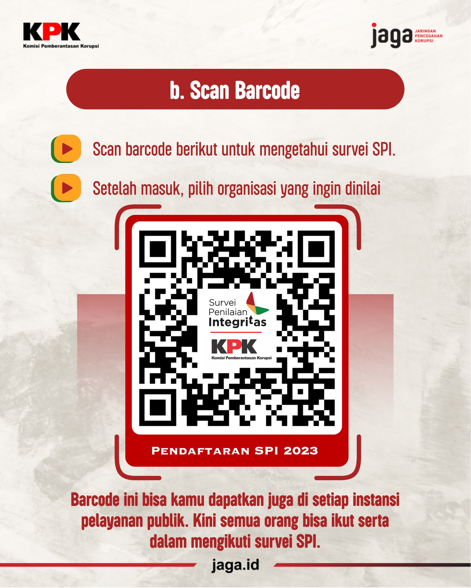 Hallo #TemanPemilih, yuk kita sukseskan pelaksanaan Survei Penilaian Integritas (SPI) Tahun 2023. Kamu dapat memberikan penilaian tentang sistem pelayanan publik yang pernah kamu kunjungi dalam bentuk kuisioner. Jawabanmu untuk perbaikan pelayanan publik Indonesia lho.